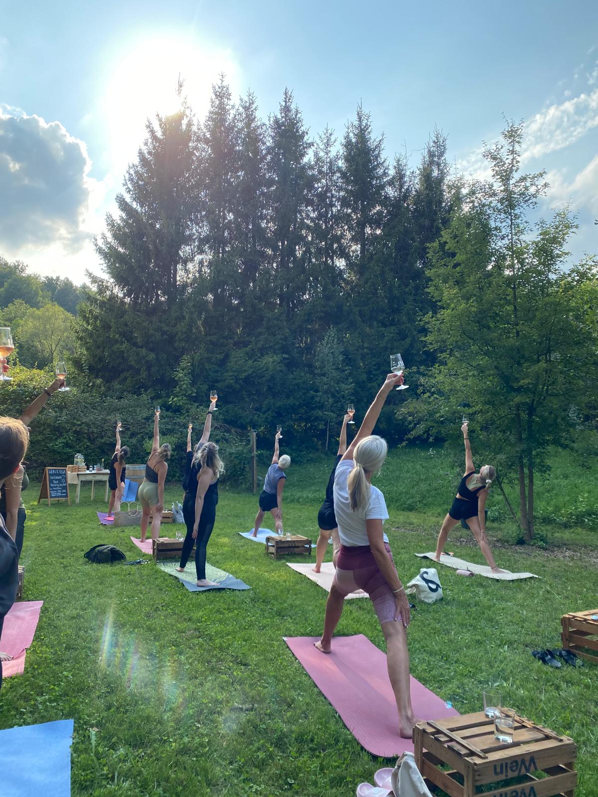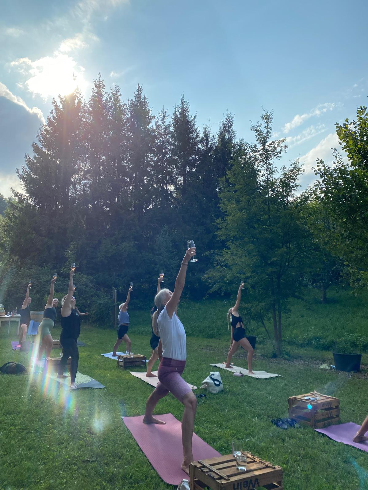 Yoga Session, inkl Weinprobe, Wasser und snacks 49€ p.P.